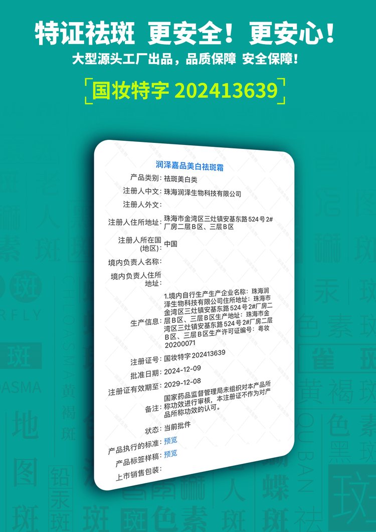美白祛斑霜原料贴牌加工珠 海润泽生物同款接受加工